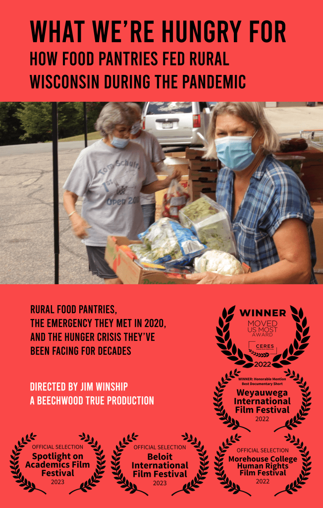 Documenting the response of five local Wisconsin food pantries to the unprecedented needs created by the coronavirus pandemic, this film tells the story of the hard work, ingenuity, and compassion of these organizations while also exploring the complex and longstanding challenges of fighting hunger in rural America.