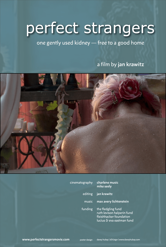 Perfect Strangers raises questions about what motivates an individual towards an extreme act of compassion. The film tells the story of two unique and engaging characters. Ellie embarks on an unpredictable journey of twists and turns, determined to give away one of her kidneys. Five hundred miles away, Kathy endures nightly dialysis and loses hope of receiving a transplant until Ellie reads her profile on an online website. Both women face unexpected challenges as their parallel stories unfold over the course of four years. Through the prism of one kidney’s journey, Perfect Strangers confronts thorny philosophical questions about acts of compassion, altruism, and ultimately, who deserves a second chance at life and at what cost.
