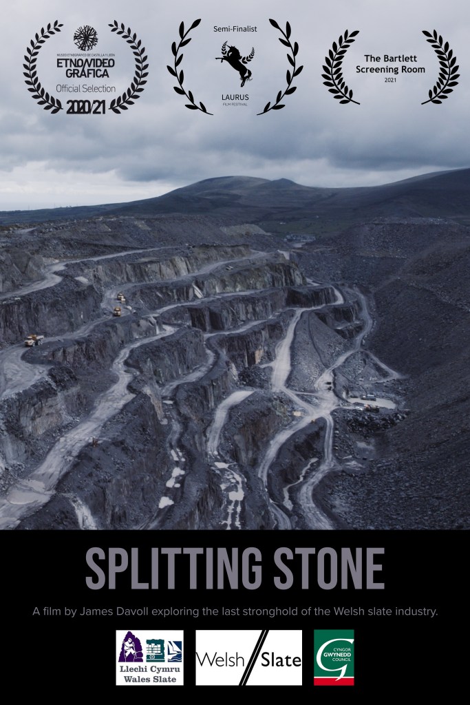 Penryn Quarry is one of the last remaining strongholds of the Welsh Slate Industry. An Industry dating back to the 16th century employing generations of Welsh workers. Where once mountains stood, valleys now reside. The mountains having been hollowed by industry. The waste tipped to the ground, redefining gradient lines. Leaving vast quarried terraces behind as a relic of industry. Splitting Stone follows the journey of one such slab of slate from mountain to crate.