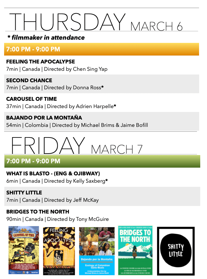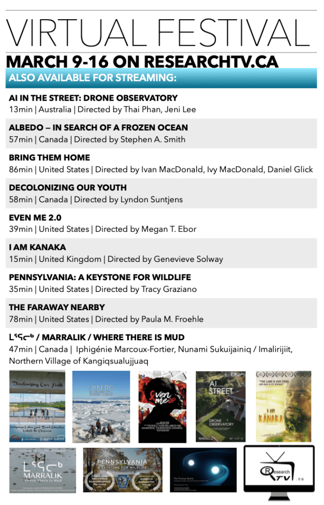 Screenings will take place March 6-8 at the Paramount Theatre (24 Court St. S) in Thunder Bay, ON. Virtual festival will be at researchtv.ca from March 9-16.